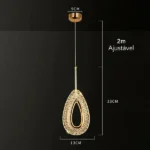 Luminária Pendente em Led com design Atemporal. Seu Formato em gota conta com acabamento em cristal de acrílico, proporcionando um brilho único e sofisticação ao seu espaço