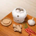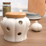 O Pote de Alho Cerâmica Respirável foi projetado para manter o alho fresco por mais tempo.